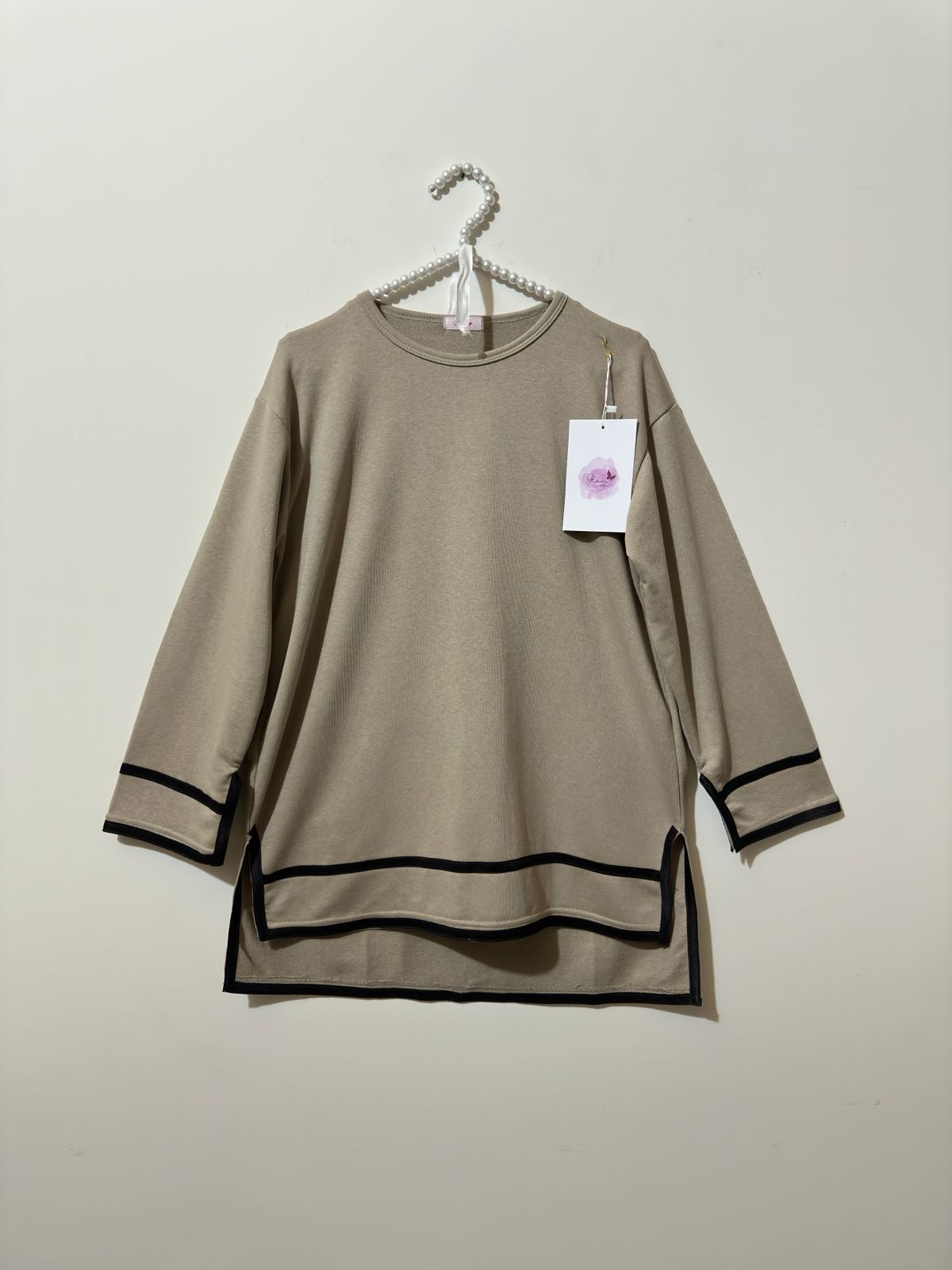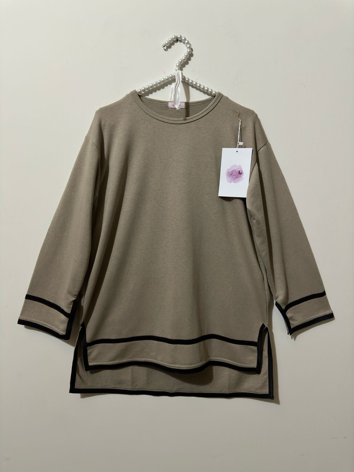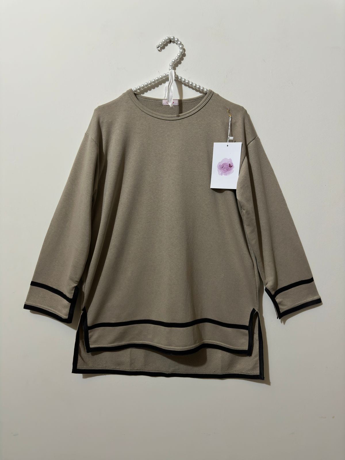 Stay relaxed and stylish with this two-piece co-ord set in Stone-Grey. It features a long, loose-fit top with side slits and white edging at the sleeves and hem for a chic touch. The matching wide-leg trousers give a comfortable yet trendy look, perfect for casual days, lounging, or travel.